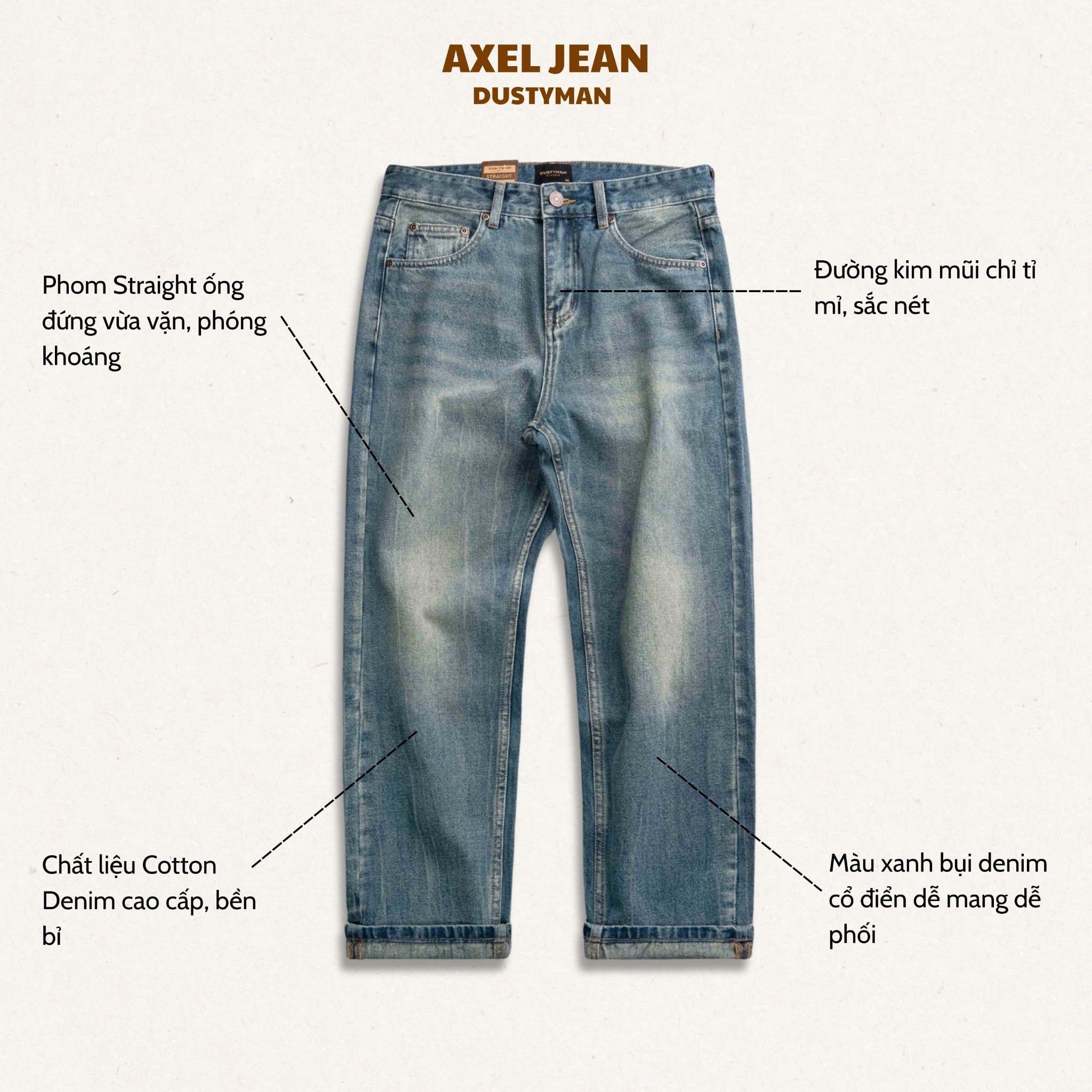 QUẦN JEAN ỐNG ĐỨNG AXEL | 602-08 STRAIGHT | XANH BỤI